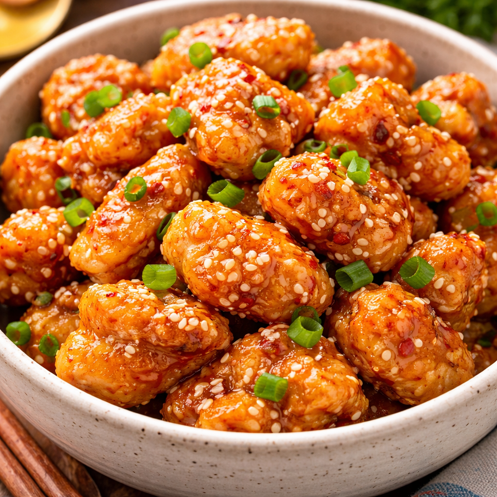 True Bang Bang Chicken relies on a wet batter, which does not work well in an air fryer (it will just drip through the basket). If you must use an air fryer, switch to a dry breading (flour-egg-panko), though the texture will be closer to a standard nugget than the authentic version.