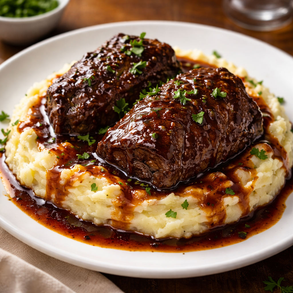 For presentation, place a generous scoop of your base in a shallow bowl. Place one or two beef cheeks on top and ladle the glossy reduction over the meat. Garnish with a bright pop of fresh gremolata (lemon zest, garlic, and parsley) to cut through the richness of the beef. A side of roasted root vegetables or sautéed broccolini provides the perfect textural contrast.
