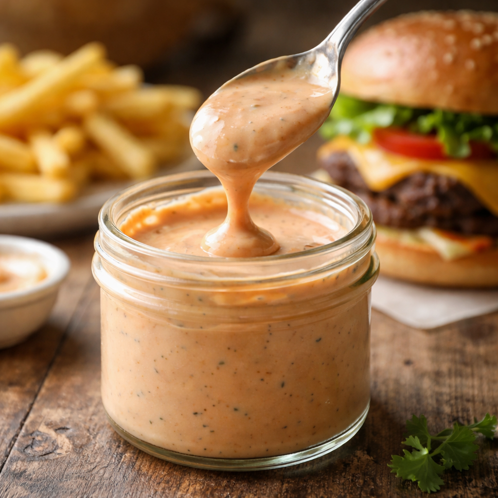 Q: How long does this burger sauce stay fresh? A: Because it contains mayonnaise and vinegar, it is quite stable. It will stay fresh in an airtight container in the refrigerator for up to two weeks. Always use a clean spoon to scoop it out to prevent cross-contamination.