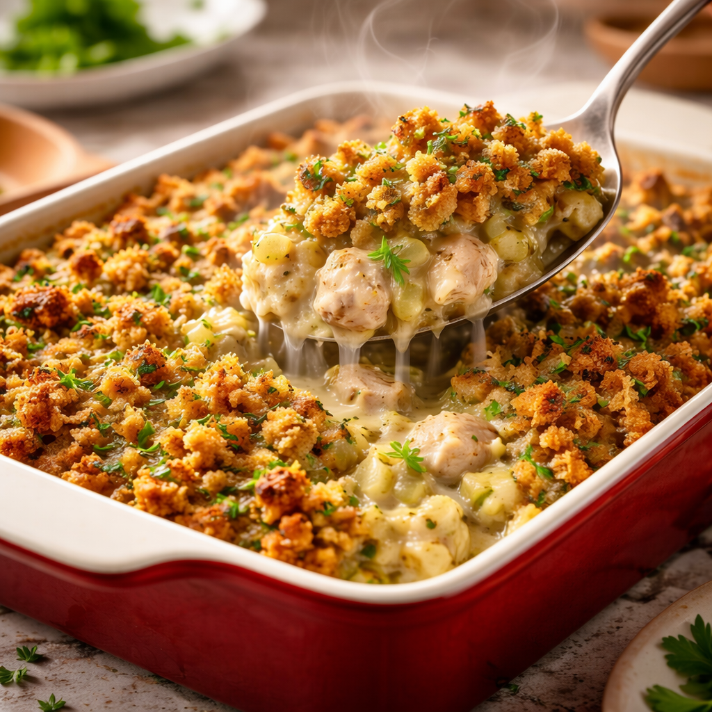 - The Crunchy Topping Swap: If you run out of stuffing mix, you can use crushed buttery crackers (like Ritz) or even seasoned breadcrumbs mixed with extra sage and onion powder.
