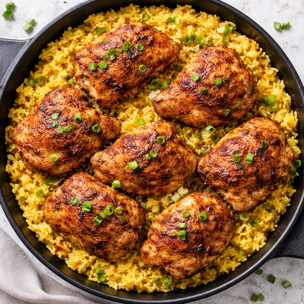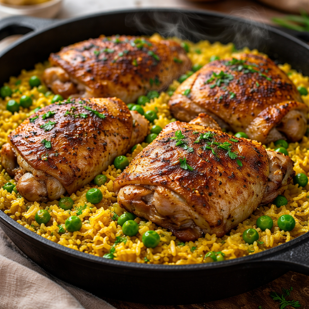 - The Platter Look: Instead of serving from the pot, spread the rice out on a large, shallow platter and arrange the chicken thighs on top.