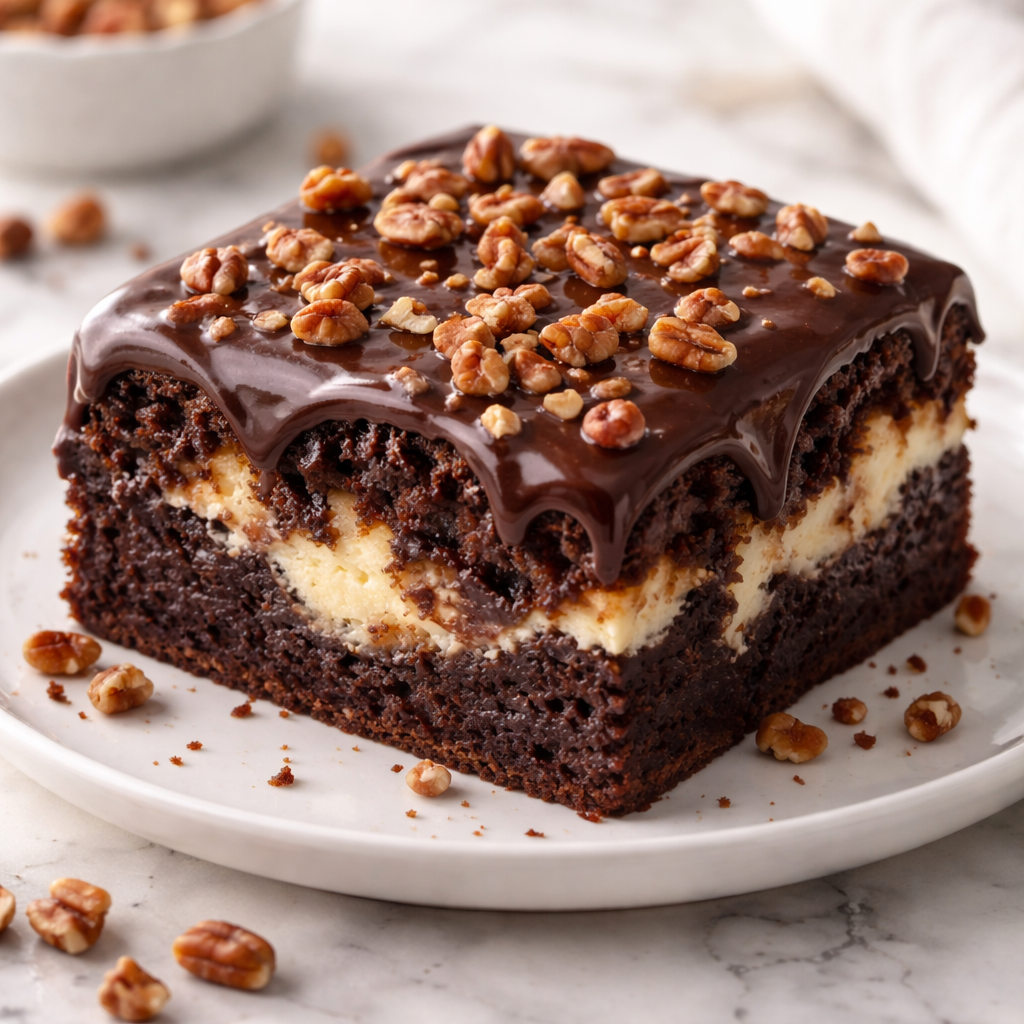 This cake is a dream for the “lazy baker” who still wants a “wow” factor. It’s a multi-layered experience of chocolate, coconut, pecans, and a rich cream cheese swirl that migrates through the batter as it bakes. It’s essentially a brownie, a cheesecake, and a German chocolate cake all decided to have a party in the same dish. Today, I’m sharing how to master this chaotic masterpiece so you can achieve that perfect balance of gooey and structural.