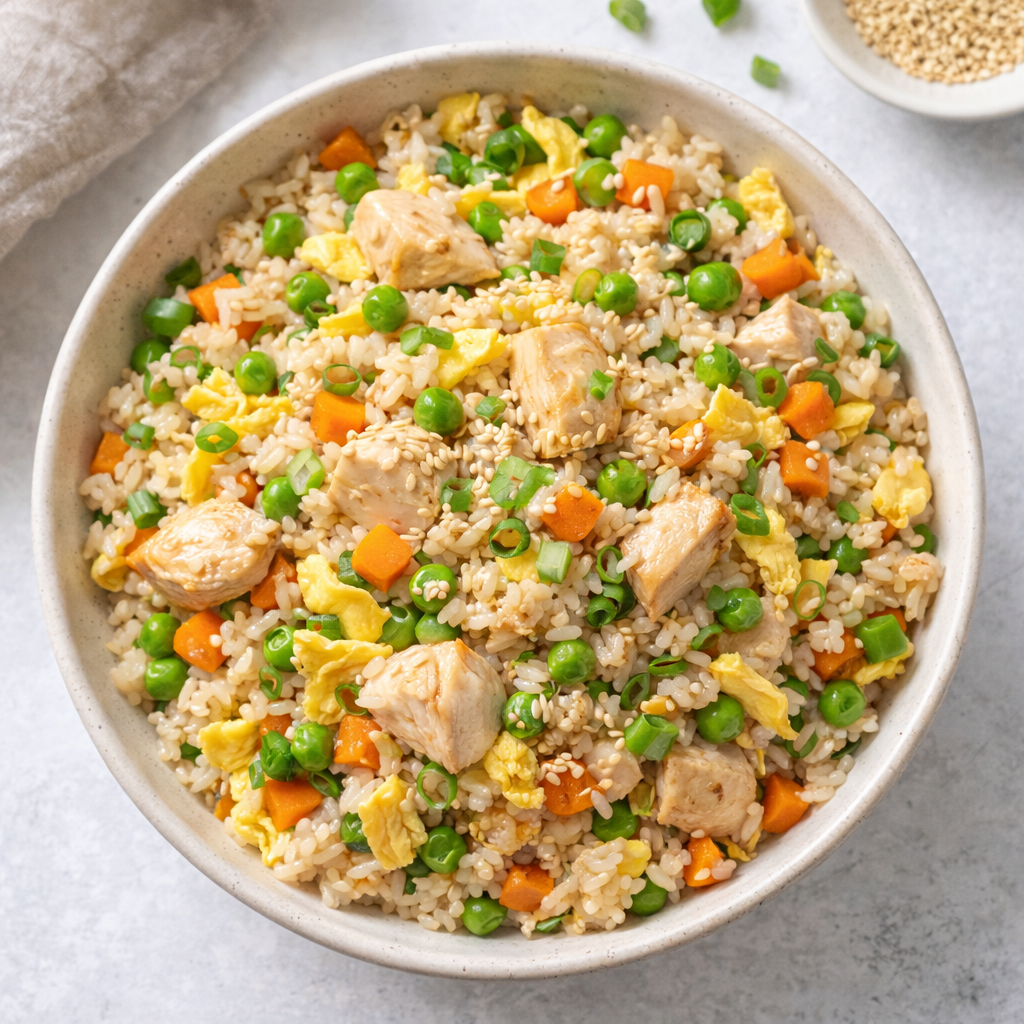 To make this Easy Chicken Fried Rice Recipe look as good as it tastes, presentation is key. Instead of just scooping it onto a plate, try pressing the rice into a small bowl and inverting it onto the center of a plate to create a perfect dome.