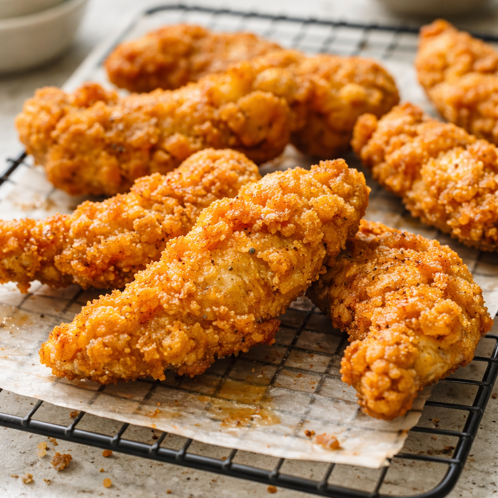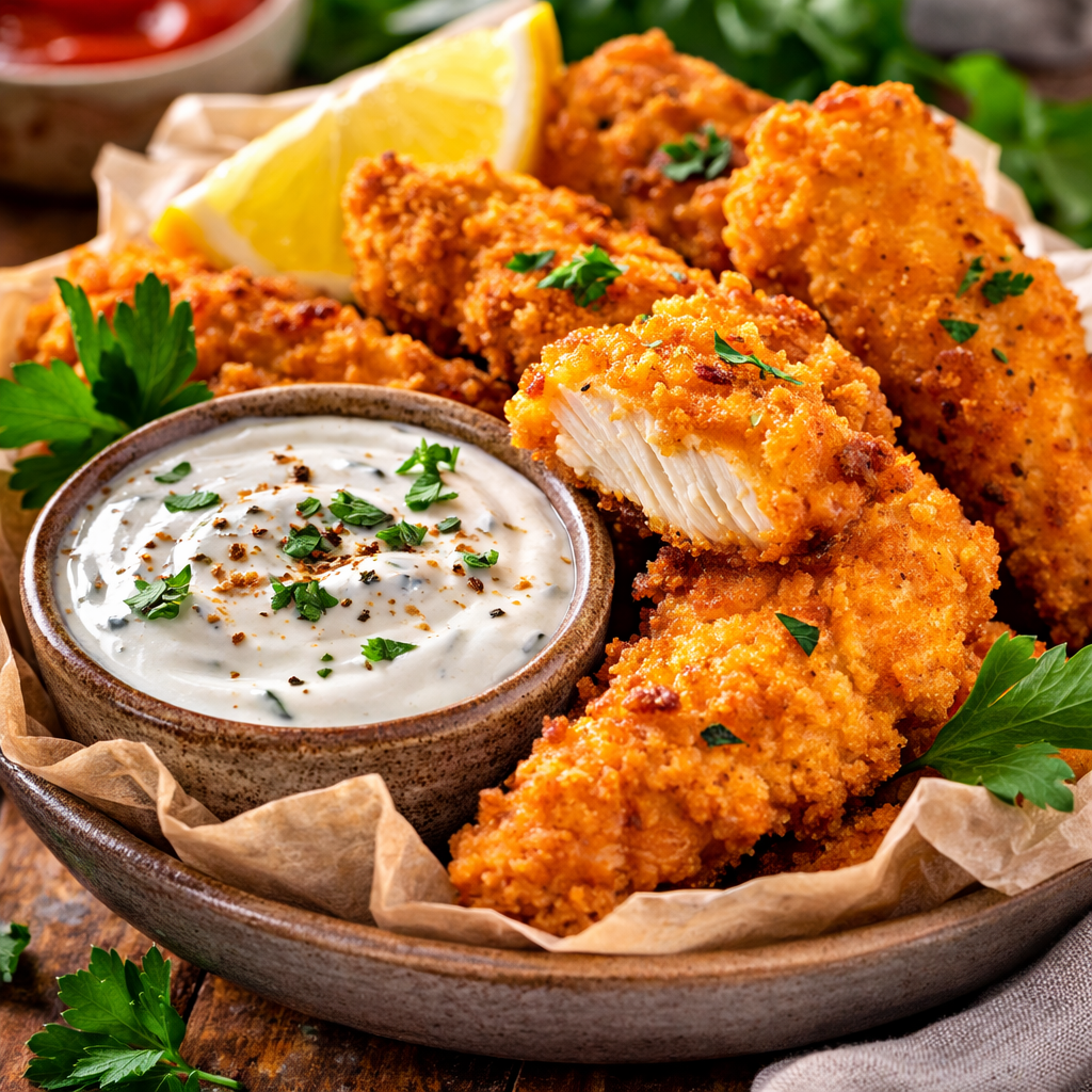 - Air Fryer Version: If you want to skip the oil, spray the breaded tenders generously with cooking oil and air fry at 400°F for 12–15 minutes, flipping halfway through.