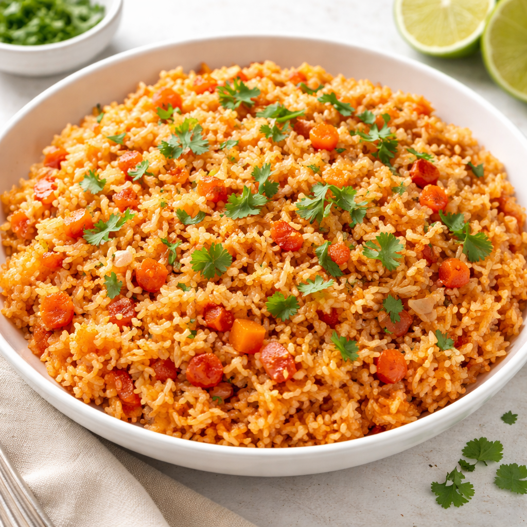 This authentic Mexican rice recipe—often called Arroz Rojo—is the professional solution to the “sticky rice” dilemma. By utilizing the “toast-and-absorption” method, you create a thermal barrier around each grain that prevents it from bursting and releasing excess starch. This guide deconstructs the science of browning rice and the precise liquid-to-solid ratios required to ensure a vibrant, savory, and perfectly separated side dish every time.