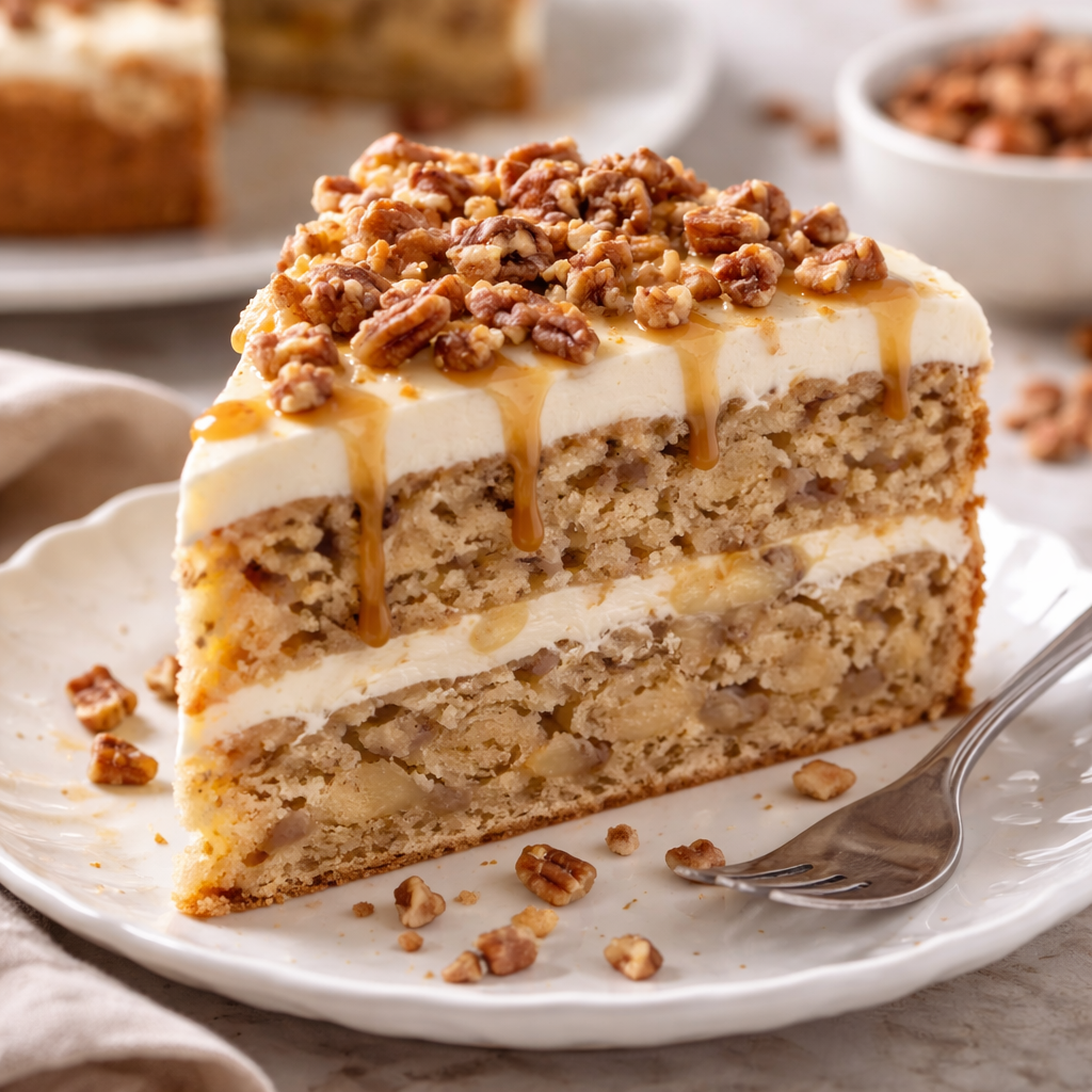 Once the cake is cold, spread the cream cheese frosting over the top. Sprinkle the toasted pecans generously across the surface. For the best results, let the cake sit in the fridge for at least 4 hours (or overnight) to let the flavors marry.