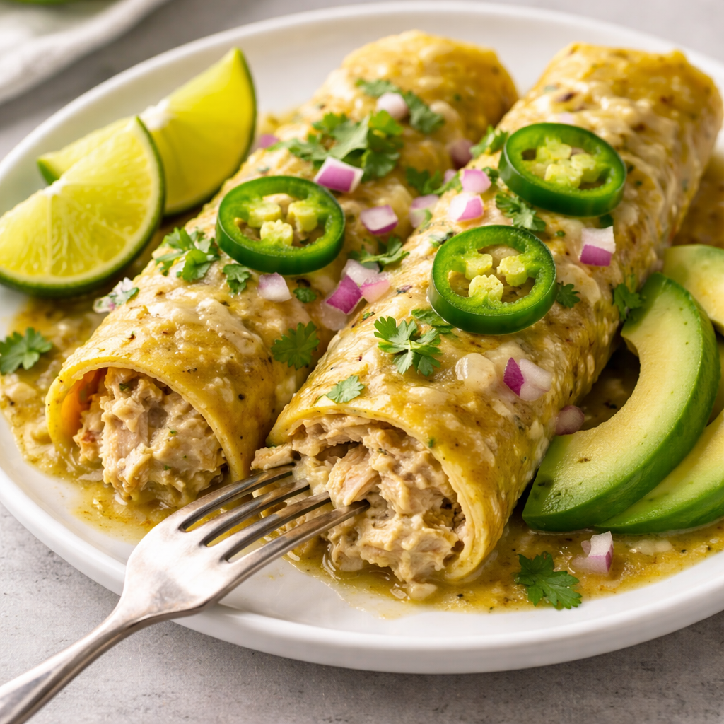 To execute a world-class Green Chicken Enchilada Recipe, you need to focus on the quality of your sauce and your choice of tortilla.