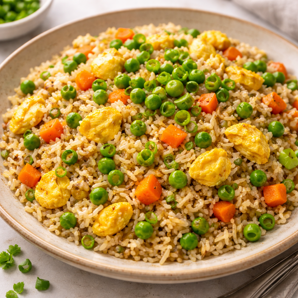 Push the rice and vegetable mixture to the outer edges of the pan, creating a “well” in the center. Pour the beaten eggs into the middle. Using a spatula, scramble them quickly until they are 80% cooked—still slightly wet but holding their shape. Incorporate the eggs into the rest of the rice.