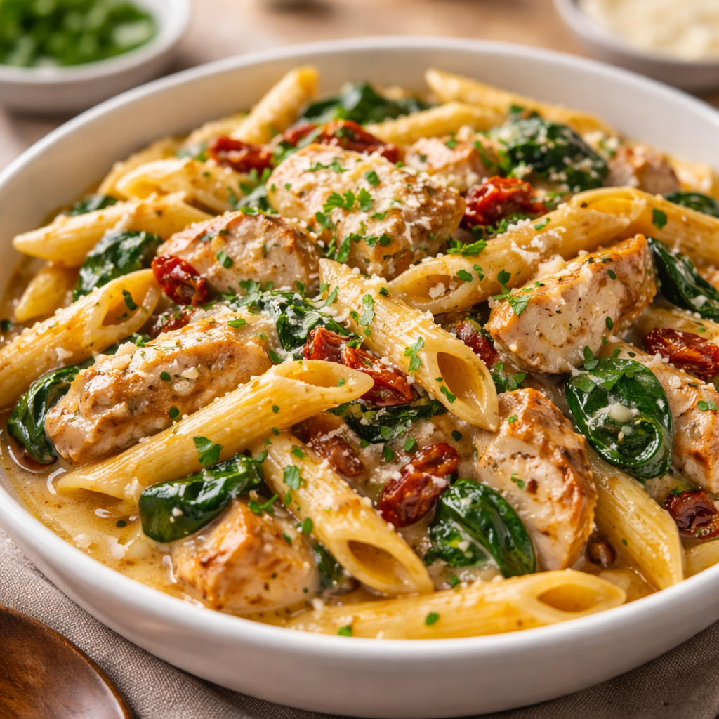 | Creamy Chicken Alfredo | Use sliced chicken breast, heavy cream, and lots of Parmesan. |