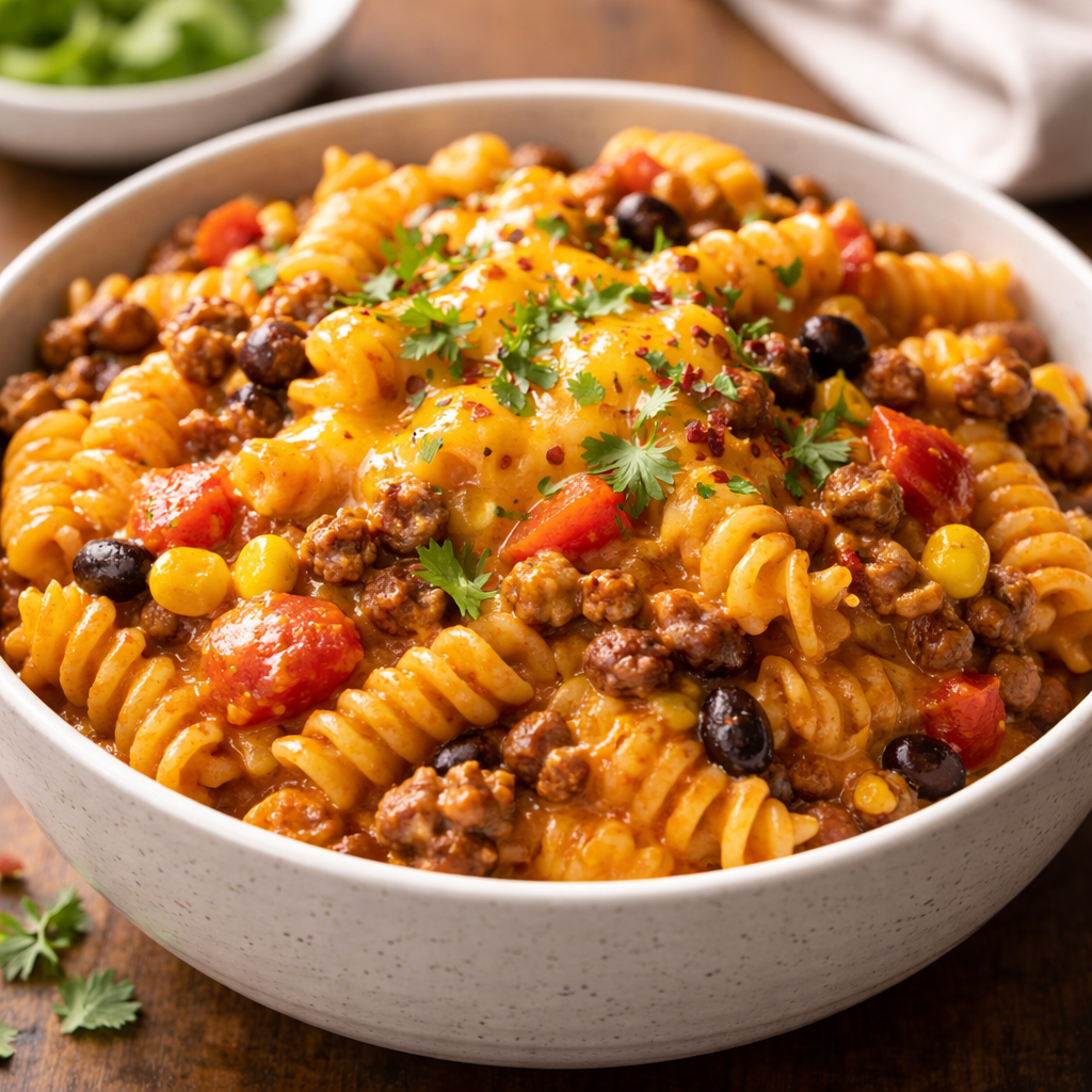 | Taco Pasta | Use taco-seasoned ground beef and finish with salsa and cheddar. |