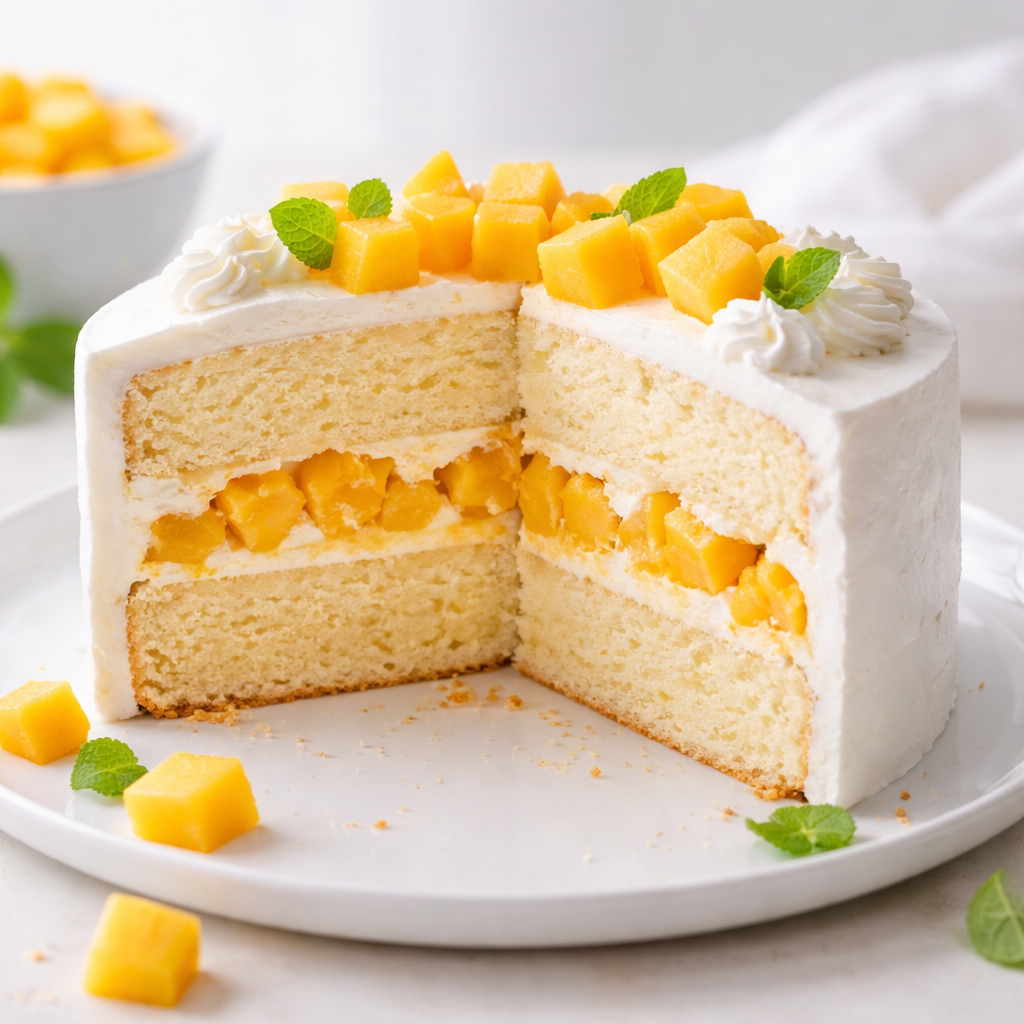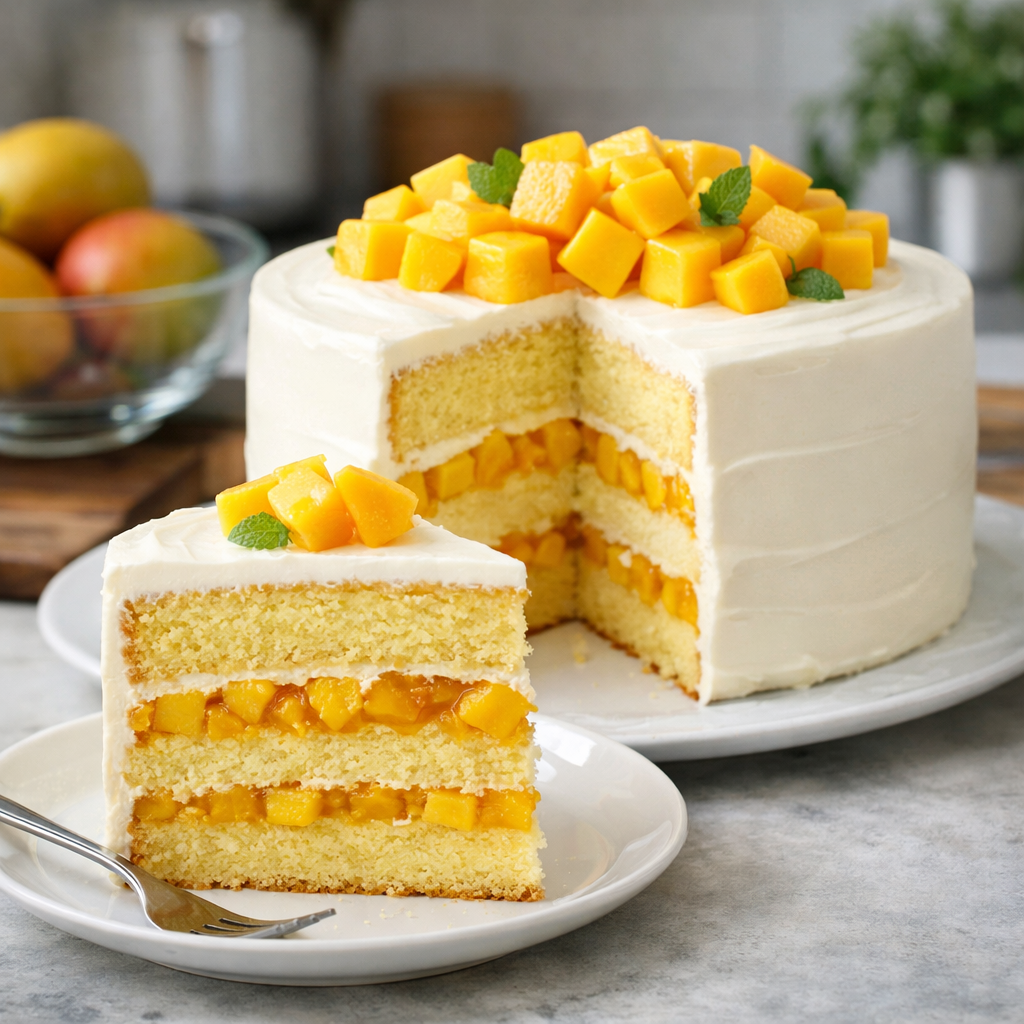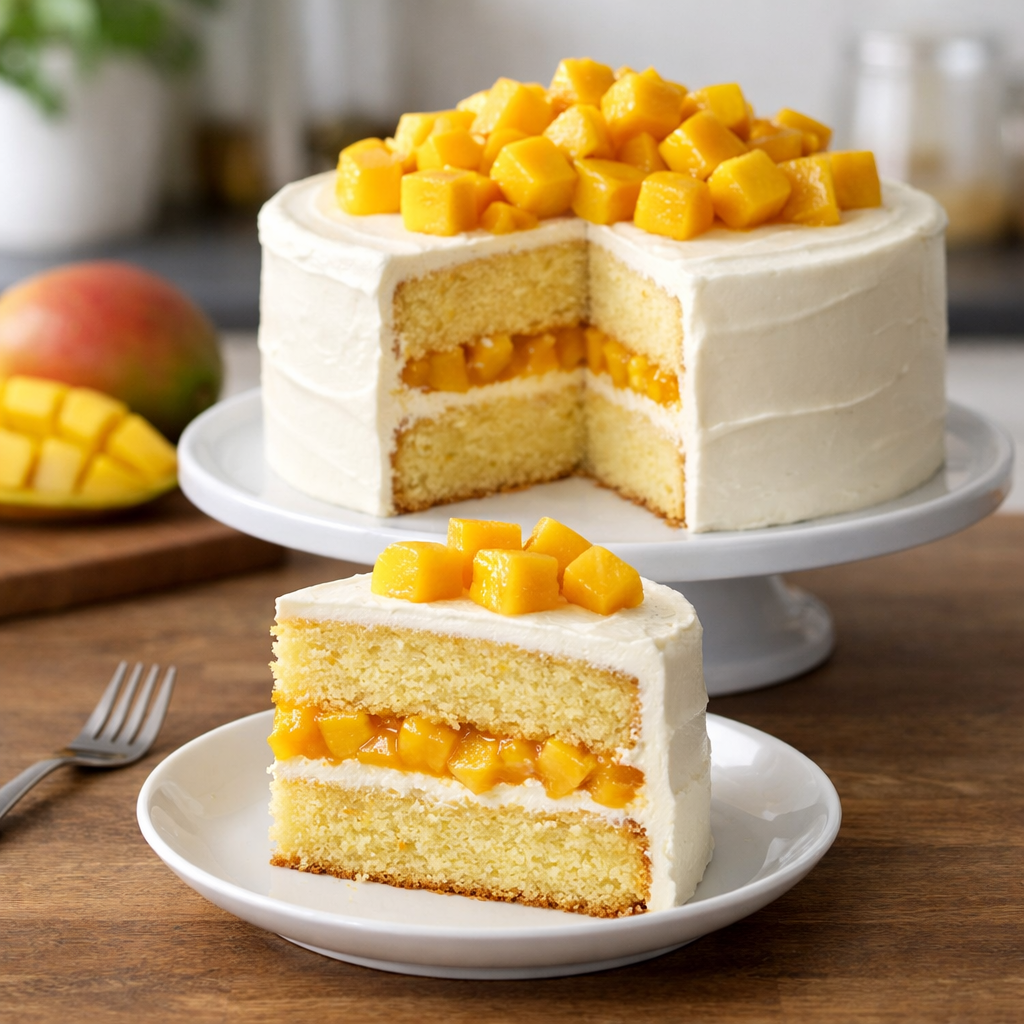 • Fresh Puree Integration: We use real mango puree directly in the batter. This ensures the flavor is baked into the cake, not just sitting on top.