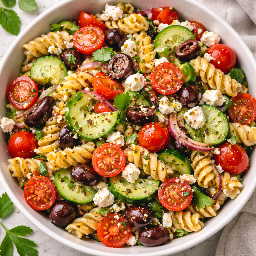 Presentation is the final “seasoning.” To make your Mediterranean Pasta Salad Recipe look as good as it tastes:
